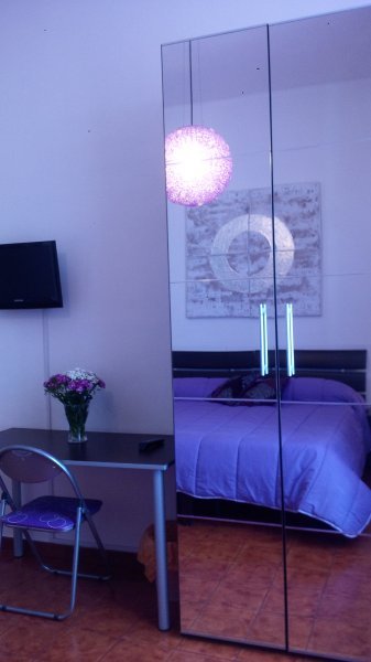 La camera Etnic con i colori Lilla e Viola molto spaziosa con letto matrimoniale divisibile, con la possibilità di un letto aggiunto e bagno privato interno. In più è disponibile una cucina attrezzata anche per lunghi periodi.